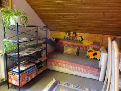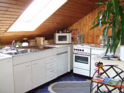 Schöne holzverkleidete Dachgeschosswohnung in ruhiger Lage für 1 - 4 Personen zum Beispiel für eine Familie mit 2 Kindern, oder Radfahrern, die kurz mal eine Verschnaufpause brauchen. Wenn Sie es wünschen kaufen wir auch gerne vor Ihrer Ankuft die nötigen Dinge für Sie ein. Bei Kurzaufenthalten ist gegen Aufpreis auch Frühstückservice möglich, ebenso Getränkeservice.